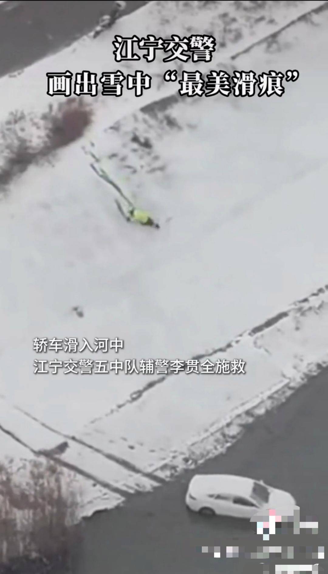 1月20日,南京江宁区交警工作人员告诉潇湘晨报记者,事发于当日的禄口街道胜利河,当时赶往现场的有很多警察,辅警李贯全第一个滑下去查看车内人员,经过确认,驾驶员已自行脱险上岸。