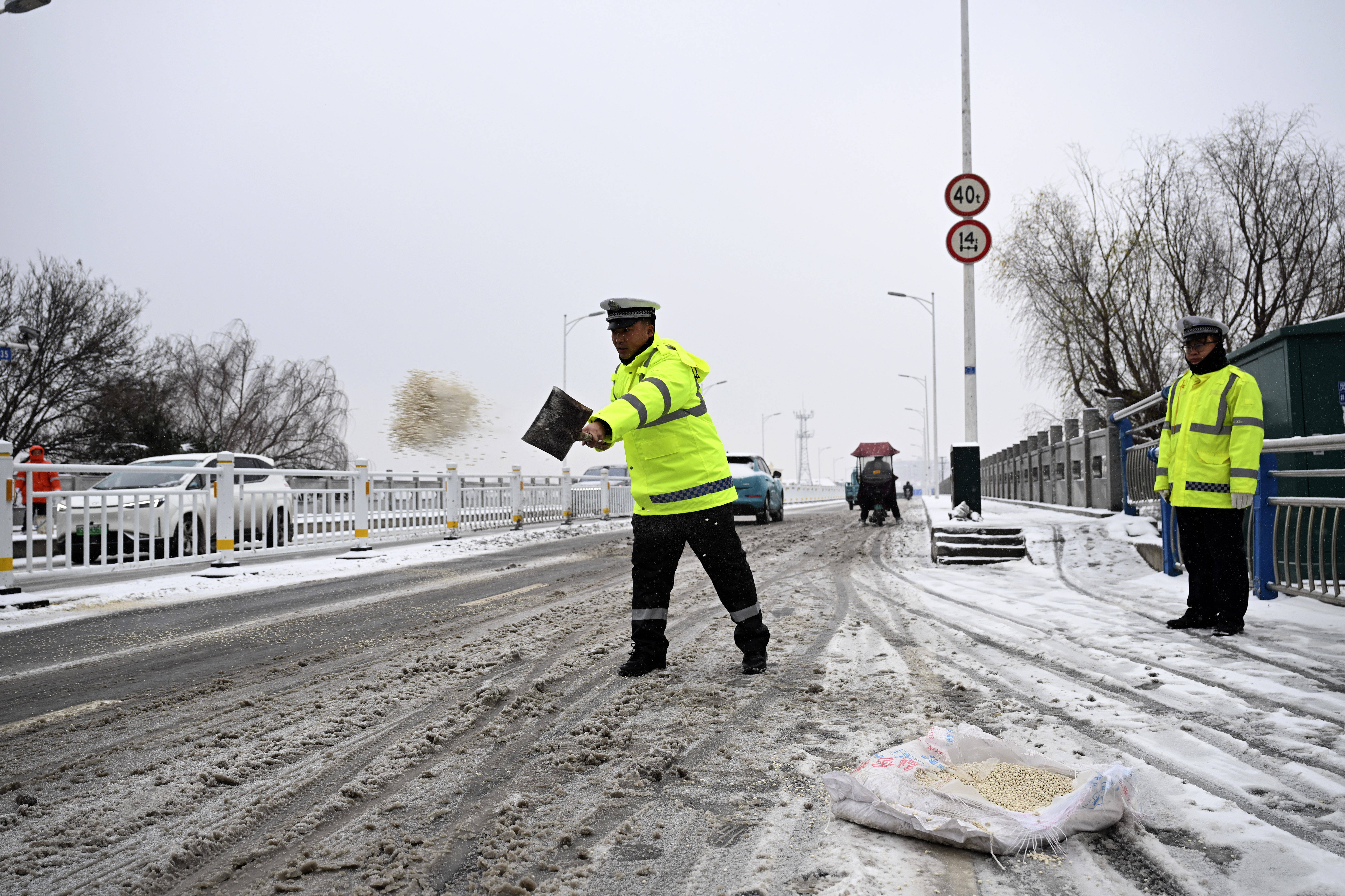 1月19日,在安徽省亳州市灵津渡大桥,当地交警正在进行清雪除冰作业。新华社记者黄博涵 摄“我们已将1100多名警力部署到关键点位。”亳州市公安局交管支队副支队长李晓朴介绍,通过多部门研判,全市已将70余台清障救援车辆、160余台铲冰除雪设备以及上千吨融雪剂等天金策略,投放到辖区桥梁、高速枢纽等重点区域,开展动态防控。